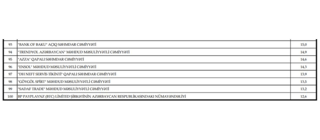 The names of the top 100 taxpayers in Azerbaijan have been revealed