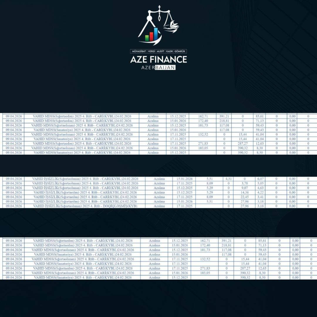 Hesabat dövrü ərzində bütün maliyyə əməliyyatları qüvvədə olan qanunvericiliyin tələblərinə uyğun şəkildə icra edilmiş, hər bir göstərici ilkin uçot sənədləri əsasında dəqiqliklə təhlil olunmuşdur. Əməkhaqqı fondu üzrə bütün ödənişlər, əlavələr və tutulmalar nəzərə alınaraq sosial sığorta haqlarının düzgün tətbiqi təmin edilmişdir.